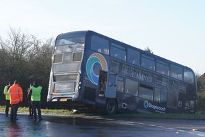 A bus filled with schoolchildren has crashed into a ditch after slipping on black ice - as nine children were injured in a separate crash.