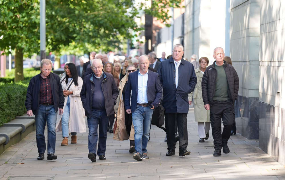 Family members of those killed on Bloody Sunday arrive at Belfast Crown Court, where the trial of a former paratrooper accused of the murder of two men on Bloody Sunday is taking place (Photo by PA)