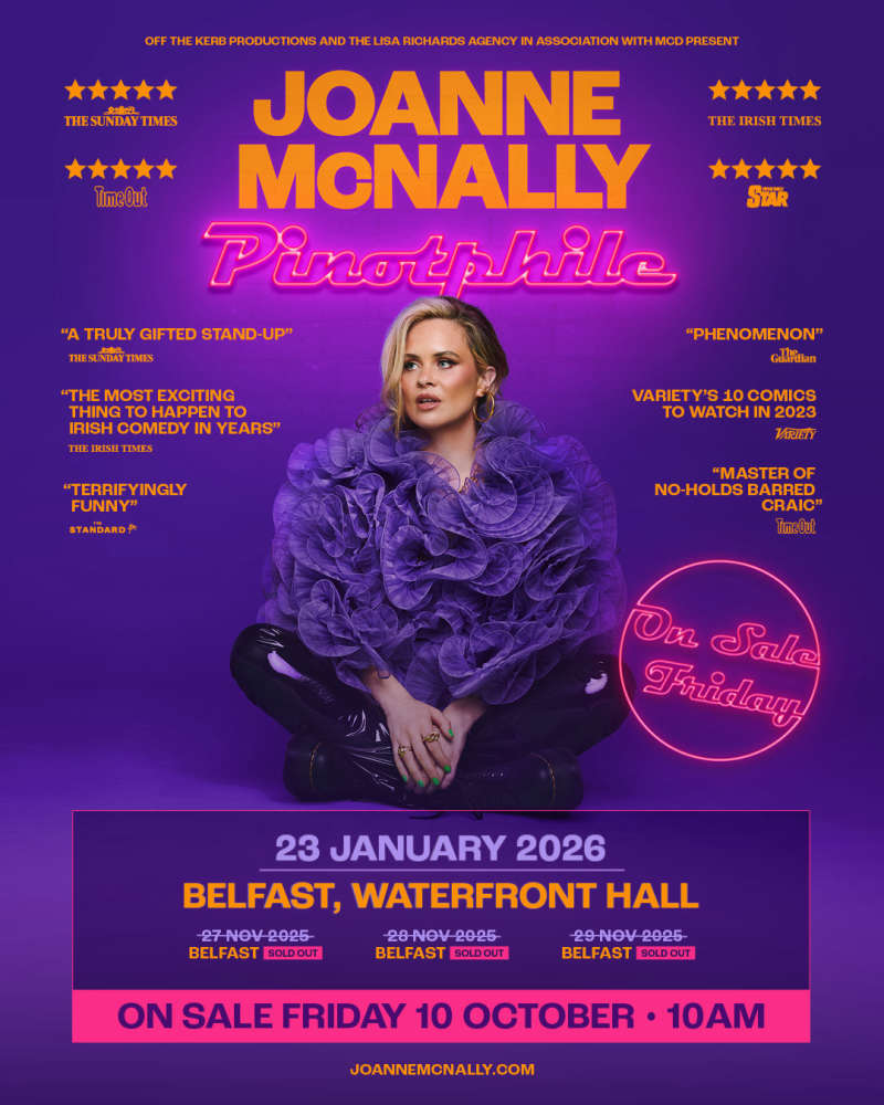Record-breaking queen of Irish comedy Joanne McNally announces her hugely anticipated return to the stage with new stand-up show ‘Pinotphile’ - UK and Ireland tour dates for 2025-2026 across cities including Dublin, Belfast, London, Liverpool, Manchester, Birmingham and many more.